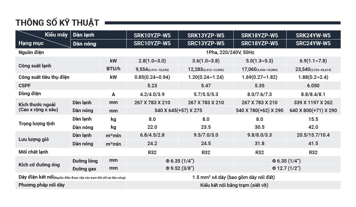 2. Thông số kỹ thuật và tính năng của sản phẩm điều hòa Mitsubishi Heavy SRK/SRC10YZP-W5